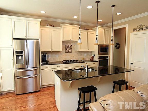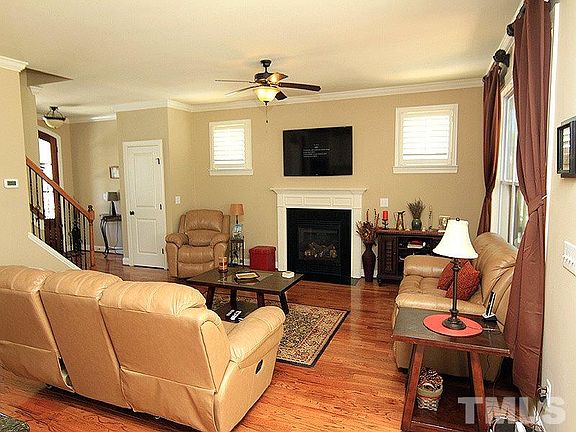A gorgeous wood door greets you at this 5BR/2.5BA house; Master BR suite down floor plan includes open Living Room & chef's gourmet kitchen with center island, granite countertops, stainless steal appliances, & 42" cabinetry. Entertain on the screen porch or lower patio overlooking the 11sth & 12th fairway of Treyburn's golf course. Convenient Laundry Rm w/ Sink. Dining Room with trey ceiling. Plantation shutters; Hardwood floors; Tile Baths; 2-car garage, Walk-in attic storage & walk-in crawl space.