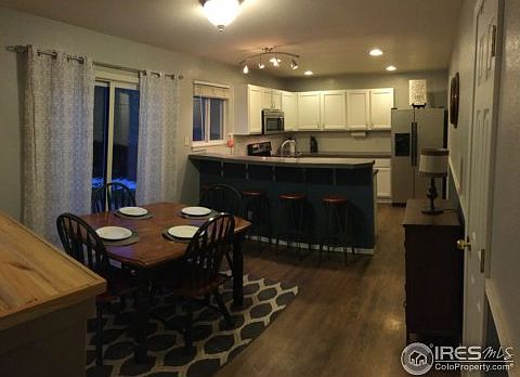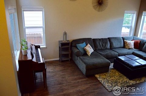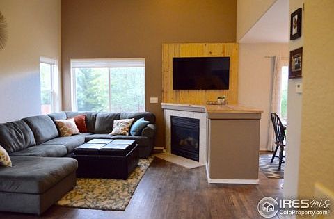 Look at this HOME! In sought after Registry Ridge! Over 2100 sq ft with 4 bedrooms, multiple bathrooms and a great yard for entertaining! Beautifully updated kitchen. Hardwood floors throughout main level. Gas fireplace. Flagstone patio, stamped concrete patio and firepit. Home theatre in basement. This will be a place you'll want to call home. Access to the community clubhouse, tennis courts and pool all included in the HOA. Convenient location to both Fort Collins and Loveland.
