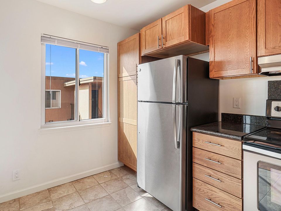 Sunny 2 bedroom, 1 bathroom apartment, awash in natural light, is located in the lovingly maintained Oakbrook Manor community, in Oakland's Clinton neighborhood just nine blocks from Lake Merritt. This remodeled residence has an open floor plan, fabricated wood floors, and a spacious updated kitchen with granite counter tops and stainless steel appliances including a dishwasher. Our Oakbrook Manor gated community has lovely grounds with outdoor barbecues, on-site laundry facilities, a Courtesy Patrol, on-site management and maintenance, and bike storage. Hot water is free thanks to our building's rooftop solar panels. High-speed internet is available from either Xfinity or AT&T fiber optic. Assigned off-street parking in the gated courtyard and/or individual garages is available for an additional fee. The Clinton neighborhood is one of Oakland's best-kept secrets, centrally located, tranquil at night, and catering to a mixture of lifestyles. It is also home to several excellent neighborhood restaurants including Champa Garden. You are close to Lake Merritt, the Grand Lake farmers' market, and excellent shopping in the Grand Lake and Lakeshore neighborhoods. Unit Features: Remodeled kitchen with generous storage and counter space Granite counters, stainless steel appliances including refrigerator, range, and dishwasher Fabricated hardwood floors Cats considered with additional deposit Building Features: Elevator Outdoor dining area with barbecues On-site laundry facilities Bicycle storage Free hot water Owner pays water, garbage, recycling and compost. Hot water is free!