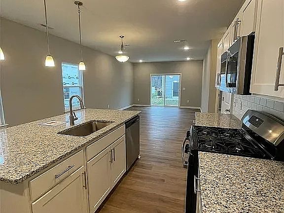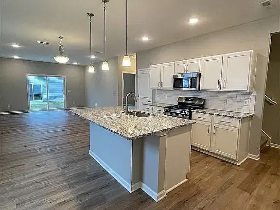 Offers an open floor plan, casual dining space, and abundant natural light. The kitchen is equipped with stainless steel appliances, stone countertops, and plenty of cabinet space. The island is ideal for casual dining and can double as a workspace. A dedicated laundry area with a washer and dryer. Enjoy outdoor living on your private patio, perfect for grilling, gardening, or simply relaxing. The townhome community offers a beautifully landscaped park for residents to enjoy.