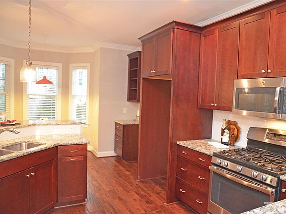 Practically new custom home in lovely neighborhood close to downtown Wake Forest. Highlighting high-end hardwood flooring, stainless steel gas stove, granite counters, crown moldings, self closing drawers & custom roman shades in LR. 1st floor office. So many options for the spacious bonus complete with kitchenette, w/d hookup & separate heating zone-4th BR, Inlaw/teen suite, playroom or mancave-accessible from inside or from its own exterior entrance! Walk to Joyner Park from neighborhood Greenway.