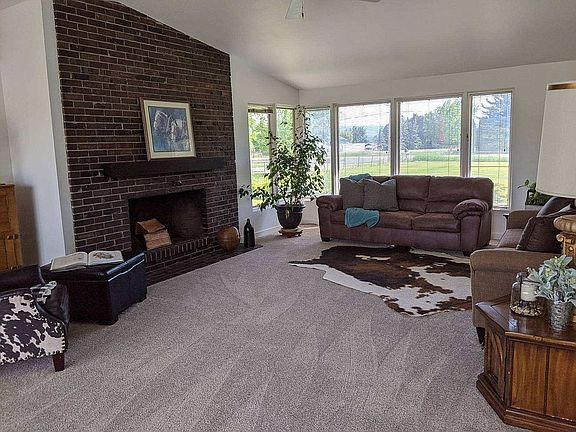 Prime Westside location! Spacious 4 bedroom, 2.5 bath rambler on 1.96 irrigated acres. Enjoy the bright living room w/lots of windows, vaulted ceiling & fireplace, kitchen w/island & french doors that open on to a private patio perfect for morning coffee & relax in the comfy family room w/fireplace. Summertime fun on the patio w/built in bar-b-que & views. Extra large detached garage & pasture. Easy access to town & I-90. 2020 updates include interior paint, roof, carpet, HVAC system, water tank, well pump & more.