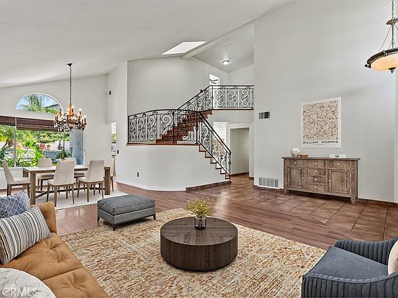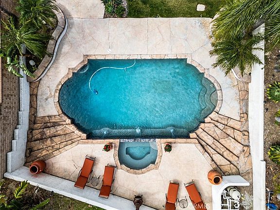 Step inside to experience an exceptional layout designed for entertaining. As you ascend the beautifully tiled staircase, accented by a custom wrought-iron railing, you'll find all four bedrooms cleverly separated from the inviting entertainment spaces, ensuring your privacy. The primary suite serves as your own personal retreat, featuring a recently updated bathroom and a charming balcony that overlooks the backyard—an ideal spot to relax and unwind. Each bathroom has been beautifully remodeled with a modern touch, making the spaces feel fresh and inviting. The centerpiece of this home is undoubtedly the resort-style backyard! Enjoy a refreshing dip in the sparkling pebble-tech lined pool and spa, complete with a captivating waterfall feature. You'll be able to entertain effortlessly in the outdoor kitchen area, which includes a built-in BBQ, bar-top seating, refrigerator, and sink—perfect for all those gatherings in the Southern California sunshine! Located in a highly sought-after cul-de-sac in Corona, this home is just minutes from the 91 and 15 freeways, as well as shopping, dining, and top-rated schools. Don’t miss out on this exceptional opportunity—schedule your private tour today!