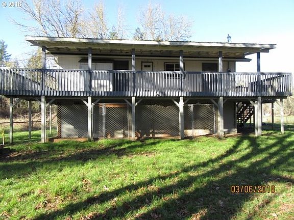 This home is really cute! This home was built in 1996 looks like it was built raised. (need to check with county) 1.36 acres. It is actually 2 stories the bottom is clean has the central heat unit & lots of storage. Check with the City of Vernonia to find out what their plans are for the property bordering this property.