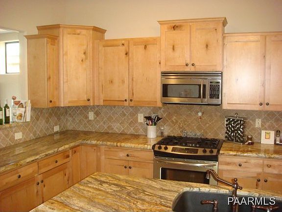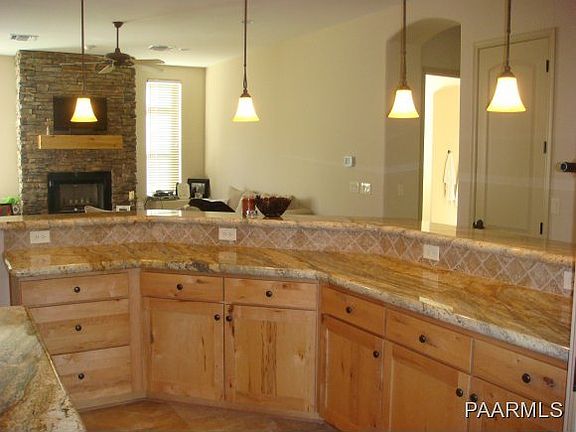 Views and more views. Enjoy views of Granite Mountain and the city lights at night. Custom built home with 10-12 ft ceilings. Travertine tile floors in living areas and Pergo floors in bedrooms. Knotty Maple cabinets with Granite counters throughout, kitchen island, stainless steel appliances, breakfast bar, great room with stone fireplace. Walk-in closets in all bedrooms. Hardscape in the backyard and 2 fruit trees (apple & pear).