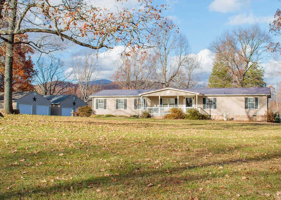 Beautifully maintained 3 bedroom 2 full bath home with TWO 2 CAR GARAGES just minutes from Bedford! This spacious home offers ample outdoor living space with a large covered front porch as well as a covered back deck and sunroom both featuring MOUNTAIN VIEWS. Inside you will find a huge master suite with sitting area/office, walk-in closet, and spacious bathroom with shower and jetted tub! Pass through the large living room to an even larger family room with gas log fireplace surrounded by a stone hearth and built in bookcases. Need even more space? Check out the bonus building in the back yard previously used for a hot tub but also well suited as an office or she shed! Updated laminate flooring through much of the home, METAL ROOF, 2019 Heat Pump and Air Handler, 2019 paved driveway, and so much more! Schedule your showing TODAY before this gem is gone!