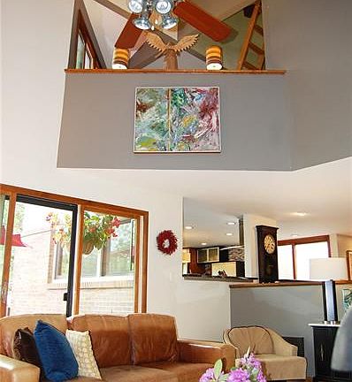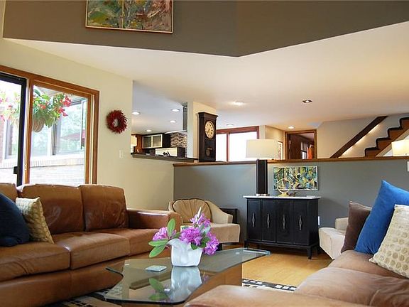 Noted architect, Tom Croswell designed this incredible home nestled on a hillside of nearly an acre of mature landscaping near the top of Westmont's Crestwood Estates. Nicknamed "Compass Point" this home's unique shape of a cross points to the 4 quadrants of the compass. Open Concept layout. Great room is bathed in natural light and warmed with a floor to ceiling stone fireplace. A wet bar and TV niche makes entertaining a joy. Raised dining room adjacent to an eat-in chef's kitchen w/slate stone floors, Uba Tuba granite counters, professional line Jenn Air s/s appliances, Candlelight Cabinetry walnut cabinets. 1st floor guest en-suite with custom rolling barn door. Slate floor mudroom to office, kitchen and garage. 2nd fl vaulted master suite with walk in closet and luxurious master bath. Bedrooms have new carpet and feature lofts for storage and privacy. LL has fireplace and covered patio with hot tub. 3 heating zones 2 air cond. zones. New metal roof 2016. Must See