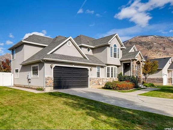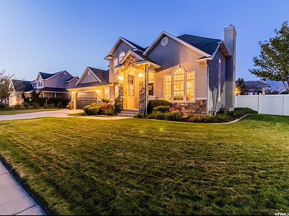 Stunning two-story home featuring 5 bedrooms, 4 bathrooms, formal dining, living room, a basement office, oversized garage and a backyard that is an entertainers dream. Located in the highly desirable Val Vista Subdivision with temple and mountain views. Inside you'll find vaulted ceilings, great room concept with lots of natural light, a large kitchen, ample cabinet and counter space, and stainless steel appliances which include a gas range and double ovens. Upstairs is the master suite with dual vanities, jetted tub, separate shower, and a walk in closet. In addition to the master suite you will find the laundry, 3 more large bedrooms, each with built in shelves in the closets, and a newly renovated bathroom. Downstairs is an additional bedroom, office, bathroom, and a large family room big enough for your gaming tables, workout equipment, or theater seating. Enjoy outdoor entertaining with two outdoor living areas. No expense was spared creating this outdoor paradise with pergolas, gas fireplace and basketball court. The community includes gated RV parking, 2 parks and community activities. Quiet area conveniently located close to schools, golf courses, city parks, Murdock Trail, and minutes from American Fork Canyon.