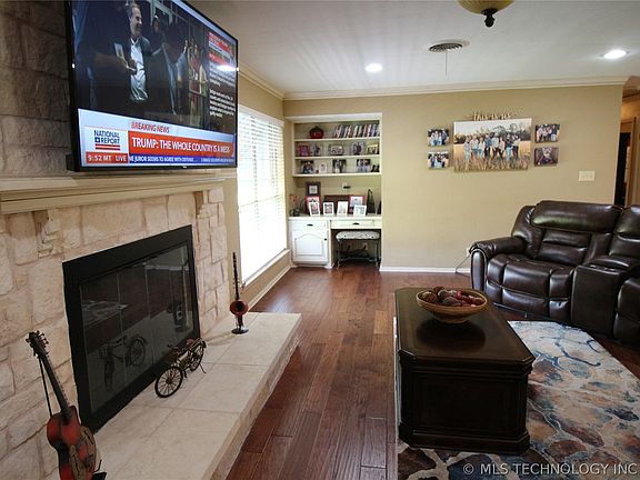 Welcome home! This beautiful 4 bedroom, 2 bath home 2 car garage The living room is oversized with a stone fireplace. It has a open concept to the dining & kitchen area and has a built in desk /bookcases Kitchen offers double ovens, microwave and vegetable sink large window over sink. 4 nice sized bedrooms with built ins & ample closet space. Double crown molding through out the home. The garage has been converted with heat & air that brings the square footage up to approximately 2500 sqft. Great place for a man cave, hobby room, or a large gameroom. Home had a instance remodel in 2009 including extra insulation Large back yard with wood privacy fence, Strom cellar, cover porches ,circle paved driveway lined with mature trees.There is also a conccrete pad water and electric for a RV hook up on the side of the house You are located five minutes from schools,hospitals shopping but yet still have the country atmosphere.