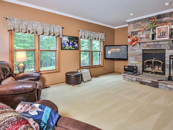 Wowie, zowie- Oooo la la! Meticulously maintained, lovingly tended and quality through and through this warm & inviting home has curb appeal and amenities galore. The fantastic main level boasts a spacious kitchen with gorgeous countertops, a living room with stone fireplace, enclosed porch, and a formal dining room. Also on the main level is an office for the stay at home entrepreneur, laundry, 1 1/2 BAs and 1 bedroom. The upper level is where you will find the Master En Suite/Wing with its own private bath and walk in closet, 2 additional BRS, and another full BA along with a sitting area. It does not stop there, however, for the full basement has an enormous family room, hot tub room, sauna, bedroom and the 5th BA. Sitting on 4 acres just outside of Eagle River, this package is rounded out with a 2-car attached garage, a 1,600 sq. ft. detached garage, blacktop drive and gorgeous landscaping. Do not let this complete package slip through your fingers!