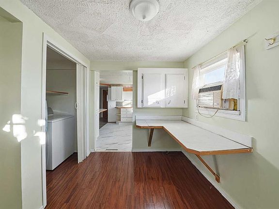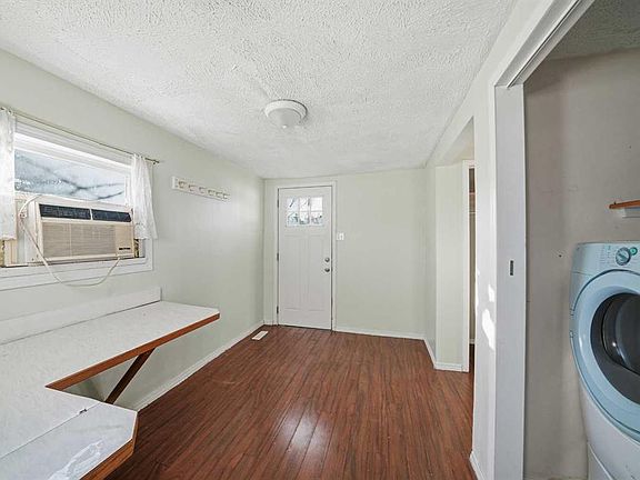 Large lotFront entrywayWhite melamine kitchen cabinetsFull tile backsplashTwo bedroomsLaminate flooringBack entryway