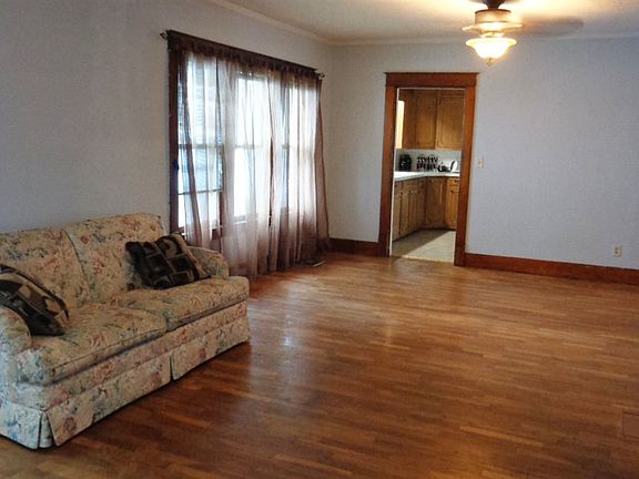 Charming 2 bedroom bungalow with open concept. Hardwood flooring in family & dining area. Partially finished basement provides extra space for a man cave or game room. Oversized enclosed front porch. Nice 2 car detached garage with loft area for additional storage. Fenced in back yard.