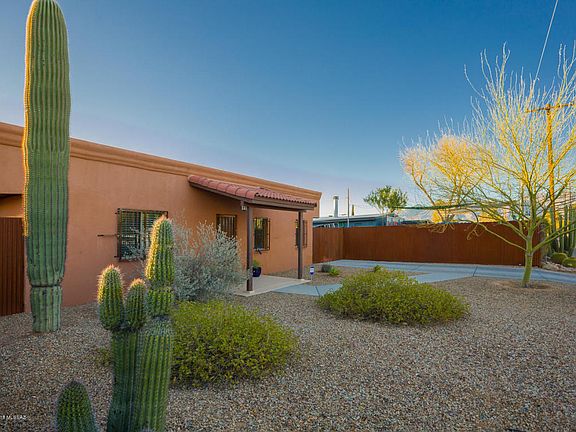 Cute as a button & move in ready! Everything has been completed at this adorable home. Updated kitchen has granite counters, easy close cabinets, gas range & French door Ref with bottom freezer. Master has two double closets, en-suite bath with two sinks & tiled shower. Neutral tile floors in main areas & Master BR, carpet in 2 bedrooms. Ceiling fans throughout. Newer security bars on the low-e double pane windows. Security doors on front door & on French Door to expansive back yard that has room for a garden, pool,play set or room for entertaining a crowd! Corrugated metal fence encloses backyard & double gate allows room to pull your car in off the street! Views of Catalina Mtns from the back & front yard. True laundry room with storage cabinets. HVAC 2017, Water Heater 2016. A must see!