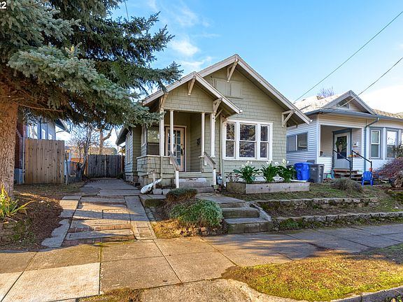 Investor Special! Bring the hammer and earn sweat equity. Montavilla Bungalow with so much potential. 2 bed, + bonus room, 1 bath with tub, and partial basement. Large primary bedroom fits king bed. Sweet little east facing porch, wood floors, high ceilings, and laundry on main. New water heater, pex water lines, and newer electrical panel. Fenced yard with raised garden boxes and shed. Off street parking in driveway. [Home Energy Score = 1. HES Report at https://rpt.greenbuildingregistry.com/hes/OR10206952]