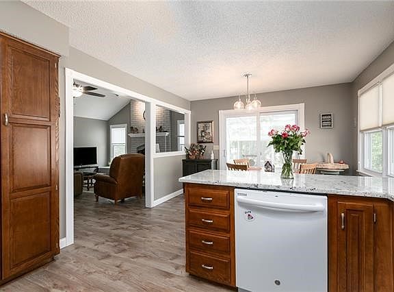 Wow! Light and bright! So much new here! All new interior paint, flooring, trim and doors, kitchen counter, fixtures, sinks, lighting and more! Beautiful open floor plan with vaulted great room, floor to ceiling fireplace, completely remodeled hall bath and kitchen! 3 bedrooms, 2baths on main level. Seasonal sunrooms on upper and bottom floors. Double closets in large master and private bath. Lower level offers BIG family/rec room, large 4th bedroom, and 3rd bath. Walk-out to lower sunroom and level back yard, nicely landscaped. Gorgeous brick laid patio! Brand new driveway and professionally maintained lawn. 2021-08-13