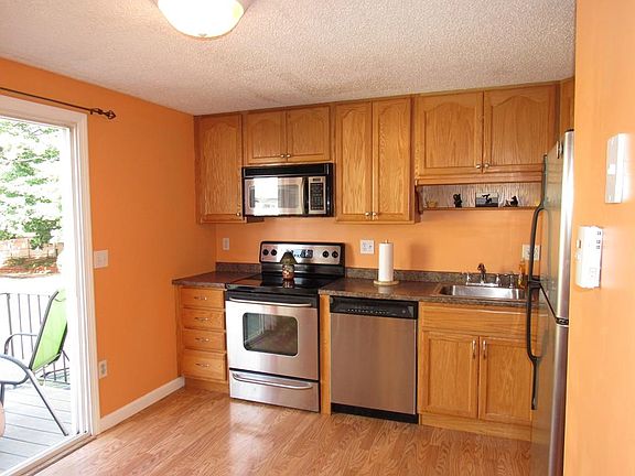 End unit in desirable Vesper Townhouse Condominiums. Many upgrades done by owner. Kitchen boast updated cabinets, stainless appliances, and a laminate floor. Sliders in the kitchen open up to a balcony for sitting and relaxing or barbecuing. Refrigerator has a hooked up and working ice maker. Both bedrooms have wall to wall carpet, just professionally cleaned. The rest of the unit has laminate flooring for ease of care and durability. Owner installed a programmable thermostat for efficient heating and cost savings. Owner also installed new storm doors for added efficiency. Lots of freshly painted areas. Complex is professionally managed. Beautifully kept up landscaping with flowers, plants, mulch, etc. Lawn always well manicured and they do a good job of keeping up with snow removal. All the units are in the process of getting new vinyl siding. New refrigerator with ice maker as of 8/13.