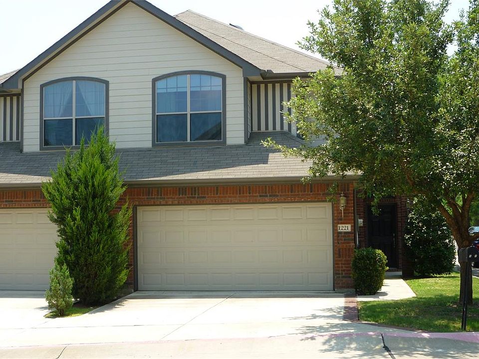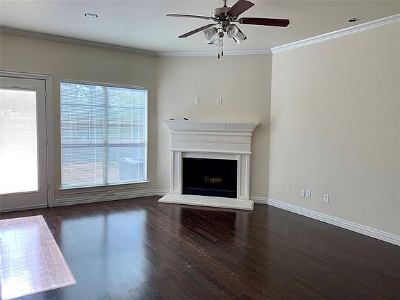 This gated community is a hidden gem of nice Townhome style duplexes with individual yards. Wide & bright this home with Hardwood floors, Granite counters & cozy breakfast bar, fireplace, and newly refrigerator. Master bedroom is generous in size & includes separate shower & dual sinks with spacious closets. Two bedrooms with generous closets and built-in shelves. Carpets are replaced few months back. Lots of storages. 2yrs olds 6' fence with nice view. Great location nearby TI and 635 & 75. Available on 12-13.
