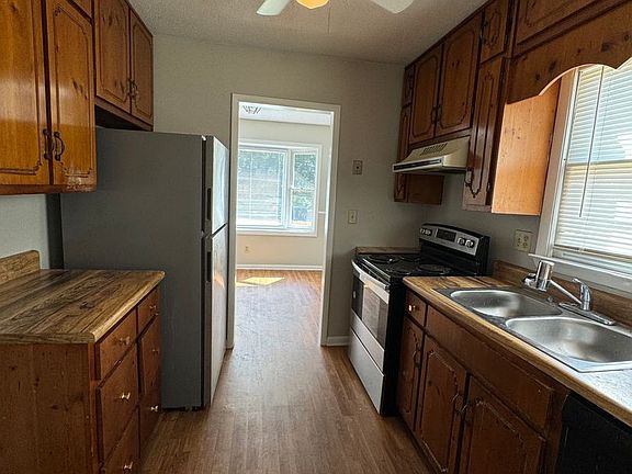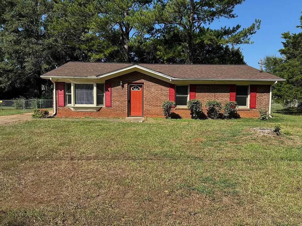One level home with 3 bedrooms, 2 full baths, with mostly hard surface flooring and fresh paint throughout, entry way, dining room with bay window, kitchen with electric range, new fridge and dishwasher, laundry room with door to back yard, family room with decorative fireplace only opens onto screened porch. Central heat and air, fenced large, level back yard and storage building. Owner must approve all pets. No Group Share, No Section 8,
