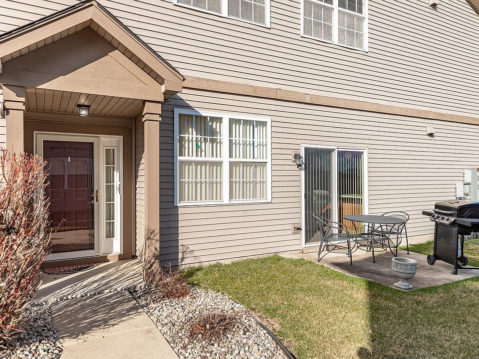 Welcome home to maintenance free living in this cute first floor, 2 bed 2 bath, condo, centrally located near shopping, restaurants, and a quick hop to Illinois for a quick commute. Included is a detached 1 car garage, Private entrance, private patio and green space. You have access to community Club House Facility and Pool.
