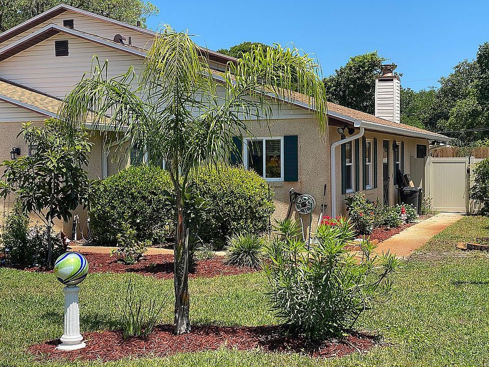 This spacious 3/2.5 two story home features a spacious living room with fireplace open to the kitchen. Unique TWO master suites, one on first floor with two large closets and private full bath. The other is on the second floor with full bath and dual closets. Also on second floor is a very large third bedroom with a large closet and a half bath. First floor has bonus room/office facing the private screened lanai with double sliding doors. All new fencing in private landscaped back yard with large workshop/shed. Irrigation well in back yard supplies full sprinkler system. Two car attached garage with electric opener. New 30 year roof and gutters added December 2021. Located on a quiet street in the heart of the St Augustine South neighborhood.