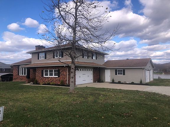 Beautiful River Views from this amazing Riverfront 3 bedroom 2.5 bath gorgeous home located in a quiet , convenient location . Enjoy a cup of coffee on your new private deck that overlooks the water ! Relax in the evening grilling out and taking in those beautiful sunsets and views ! Very impressive kitchen with new stainless appliances , large island , and beautiful live edge countertops ! Large primary bedroom with en suite bathroom , walk-in shower with stunning tile and glass enclosure ! Beautiful black metal railing along the staircase , attractive lighting throughout this beautiful home with a beautiful fireplace to enjoy ! Lots of natural light enters through the extra large living room windows , and rear patio doors ! This home is tastefully finished and move in ready with plenty of living space , multiple garages and is conveniently located to Raceland , Greenup , Ironton , Russell , Ashland . Flood insurance not required . This is a Must See !