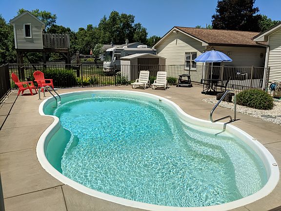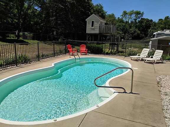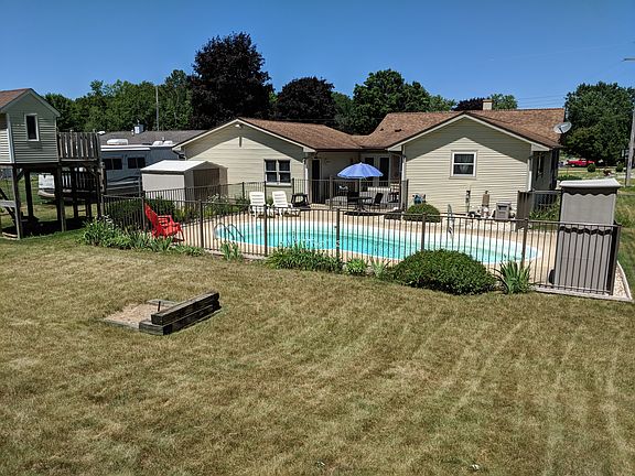 SUMMIT TWP ranch home with 3 bedrooms, 1.5 baths and a potential 4th bedroom on the lower level. The in-ground, heated swimming pool and fenced yard make this a great find just in time for summer. Convenient kitchen with full appliance package, plenty of cabinet and counters. A tastefully finished recreation room on the lower level offers a wonderful place to entertain guests if not out back by the pool. From the attached garage step into a breezeway area with coat closet, storage space and doors leading to the rear deck and pool. Also features central air, vinyl siding, an attached two car garage and a fenced yard beyond the fenced swimming pool. Quiet area, convenient location.