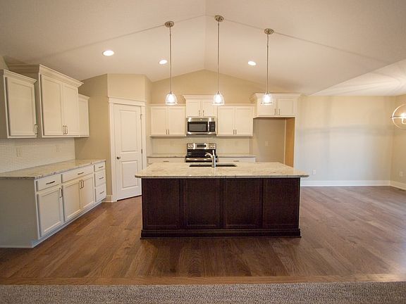 Classic Builders presents the Madison Ranch plan with 2x6 construction, 4 bedrooms, 3 full bathrooms and 3 car attached garage. Split bedroom plan with two bedrooms in front of house with full bath leading to living room with stone fireplace. Open kitchen with painted cabinets, quartz countertops, tile backsplash, corner pantry. center island and hardwood flooring that extends into the dining area with sliders to the covered deck. Large master suite and master bath featuring double vanity, tile shower and walk-in closet with access to the laundry room. Over 870 sq. ft. finish in the lower level offers a spacious family room with full bath and 4th bedroom and wetbar.