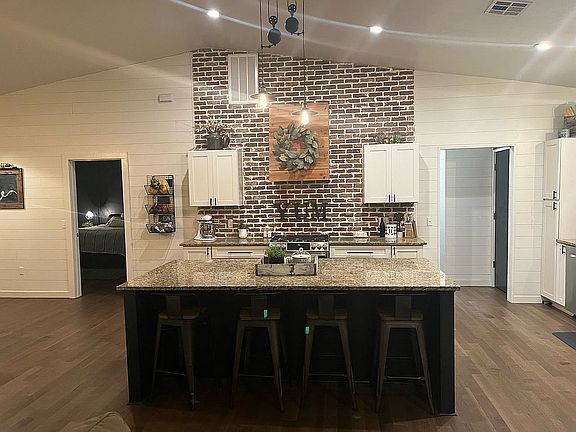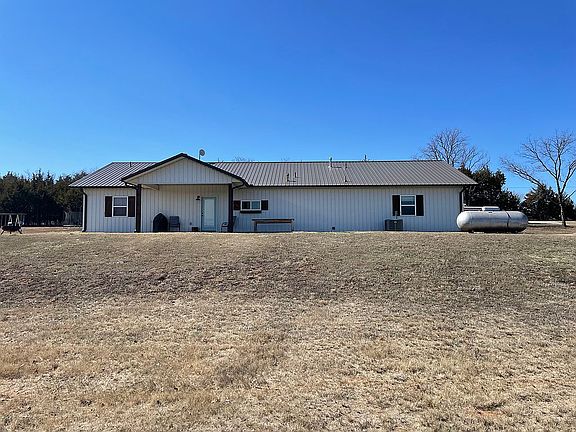 A must see! A split floorplan with 4 bedrooms 2 1/2 bathrooms and a bonus room that could be an office, playroom, or den that sits beautifully on 8 acres with a pond and paved roads. The living, dining, and kitchen boasts vaulted ceilings while the other rooms are 9ft ceilings. The spray foam insulation and wood burning stove keep the monthly utilities bills low. Walk in storm shelter in the garage. Want peace and quiet with the convenances of the city close by? This one is for you! Additional 2 acres available for purchase if desired.