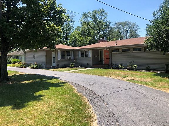 Well-maintained, one-of-a-kind mid century home. This home features a large living room with wood-burning fireplace, a spacious family room with loads of closet space, a functional greenhouse, a large all-seasons room and a newly tiled kitchen. Appliances convey. This home features a huge garage with a spacious shop table and plenty of shelving, a detached bonus room with a second wood-burning fireplace and the property is on a double lot with a circle drive on a quiet, tree-lined street with sidewalk. This home has a brick paved patio with pergola and well-maintained landscaping throughout with a bonus shed in the backyard. Original hardwood floors, lots of updates and fresh paint throughout. Great family home with endless possibilities. Call for a showing today!
