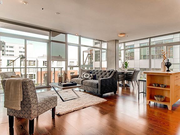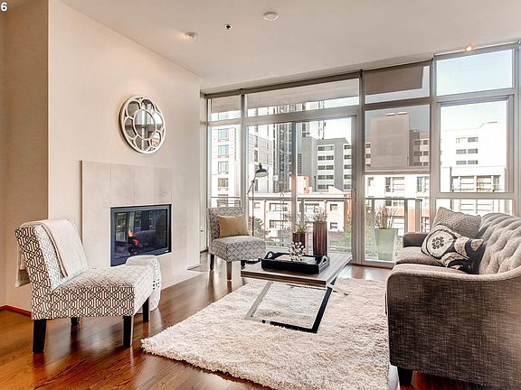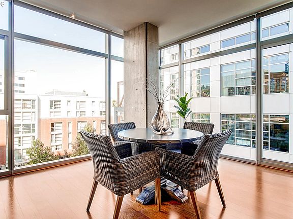 Eliot Tower, named after Portland humanitarian, Thomas Lamb Eliot, is a luxury high rise in the heart of SW. Located next to the Portland Art Museum. This 2 bed, 2 bath condo is on the NW corner of the building. Floor to ceiling glass, travertine stone, hardwood floors, gas range, over sized balcony off master and living room. Juliette balcony off kitchen. 1 deeded parking space on first level of garage close to elevator.