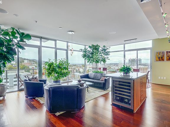 A true 2bed/2bath NW corner unit with spectacular views of Mt. St Helens and West Hills. Floor to ceiling windows in bedrooms and living/dining room. Upgraded kitchen w/ granite counters, large island w/ blt-in wine cooler, SS appliances. Audio system in all rooms! Soak in the views from the deck or at the custom table nook. Tandem deeded parking spaces right next to deeded storage. Fantastic building w/ 24/hr concierge, gym, library.