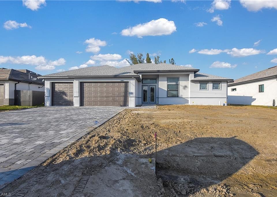 NEW CONSTRUCTION! Situated on freshwater canal, this single family pool home is perfect for a growing family. Inside you will find quality construction w/ tile flooring in main living area, an open concept kitchen, volume ceilings, and spacious bedrooms. Wonderful outdoor living space offering an extended screened pool lanai w/ gorgeous pavers on entire pool deck. The under truss sitting area of the lanai is plumbed & wired for a summer kitchen. Situated in a non-gated, no HOA SW Cape Coral neighborhood and surrounded by all of the conveniences of life- shopping, dining, sports fields, schools, plus just a short drive to the Midpoint Bridge heading into Fort Myers.