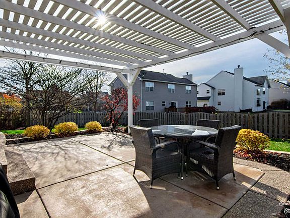 Updated exterior in today's colors! Beautiful garage doors, newer siding (2016) and a brand new roof (March 2020). Dramatic entry with soaring ceilings in foyer and family room. Nine foot ceilings through the rest of the floor for a spacious feel while there are still quiet spaces to get away in the private office, finished basement or bedroom retreat. Floor to ceiling eye-catching family room fireplace to get cozy in the Winter. Bright and functional open floor plan. Kitchen w/island, new SS appliances, granite counters, 42" cabinets, eat in area and views of the backyard. Sliding doors to the patio with pergola and hot tub. Fenced yard (fence installed 2016). Bathrooms updated with granite counters. Finished basement gives you so much extra square footage with wet bar, 1/2 bath & storage. Great neighborhood with easy access to interstate.