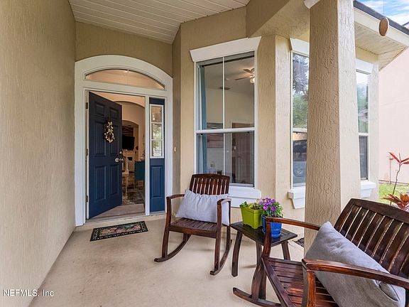 Come see this spacious home with a large fenced yard and a wonderful layout with a bonus room/4th bedroom upstairs for your teen suite or guest room! Dollhouse, playset & shed convey with plenty of room for a pool. PLUS: there's a gate out back leading to the walking path for a shortcut to the amazing amenities! New additions: Roof 2019; AC 2022; Hot Water Heater & Water Softener 2023 + Solar Attic fan added. Primary bedroom is located on main floor with 2 other bedrooms + guest bath + task desk for homework in the hallway. Dedicated home office up front is great for ''work from home'' needs or use it as a separate den/flex space. Covered patio in the back has been converted to another home office (not incl in SF) or could be a bonus room, exercise or craft room. Owners bath has garden tub, dual sinks & newer shower tile flooring. Lovely kitchen flows into the dining area and gathering room with ship lap detail on the accent wall & front of the breakfast bar. Top rated STJCO schools! Located in the heart of World Golf Village, you'll be so close by various shopping & dining centers including 2 Publix, Walgreens, Starbucks, Buccees, Costco, St Augustine Outlet Malls and a brand new Zaxby's and Mellow Mushroom just opened. Heritage Landing has so many nice features including mature landscaping amongst quiet, tree-line streets, a wonderful clubhouse, resort pool, gym, volleyball, pickle ball & outdoor movie spot under the pines.