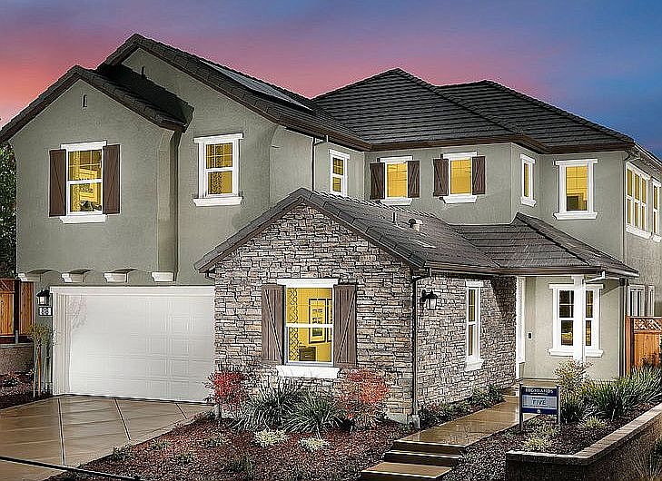 Virtual Tours- Residence FiveThe large home design offered at Highlands, the Residence Five plan exudes spacious luxury living. Downstairs is a convenient bedroom with en-suite bathroom perfect for older children or overnight guests. The open living area gives plenty of room for the Great Room, dining area, gourmet kitchen and breakfast nook to peacefully connect. A covered California Room is a stylish feature for outdoor entertaining. Upstairs is a spacious loft and three more bedrooms including the elegant and large owner's suite. The master suite provides plenty of space with an expansive spa-like bathroom featuring split vanities, his-and-her walk-in closets and a private balcony for added luxury.