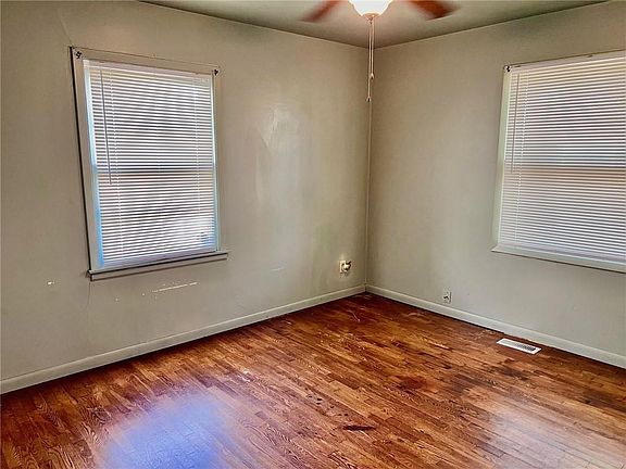 Cute 1958 2 bedroom 1 bath with partial basement. Original hardwood floors have been restored. Bathroom has been updated. Vinyl siding on house . Single car attached garage and detached garage with alley access to backyard. Off street parking. Central heat and air. Owner Agent. Possible owner carry with approval of buyer by seller. $10,000 down payment.