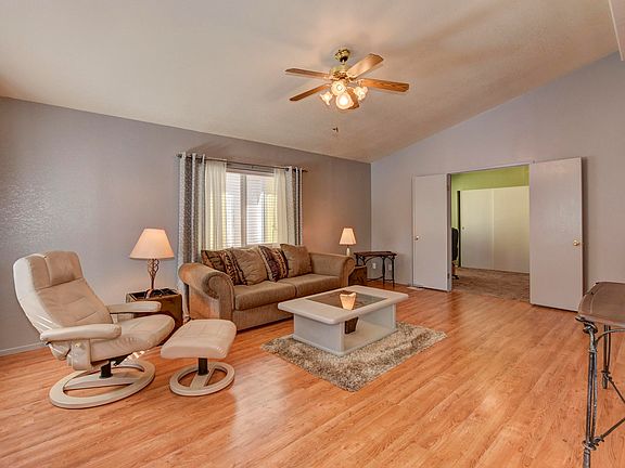- Interior Features: Ceiling Fan(s), Counters-Laminate, Live on One Level, Master On Main, Raised Ceilings 9+ft, Smoke Detector(s), Wash/Dry Connection, Counters-Granite, Kit/Din Combo, Garage Door Opener(s)