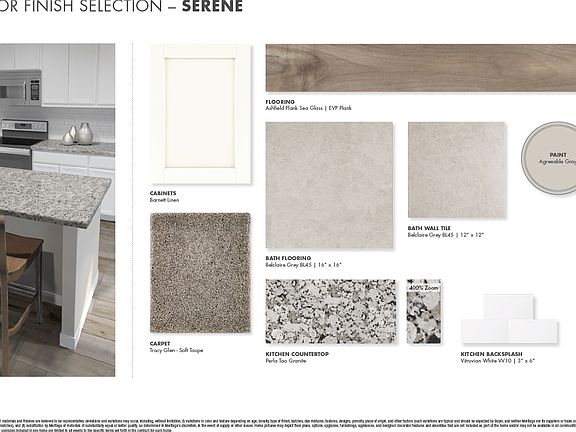 Prepare dinner at the convenient kitchen island without missing conversation in the adjacent family room. Linen cabinets with off-white grey granite countertops, grey brown EVP flooring and warm grey brown carpet in our Serene package.