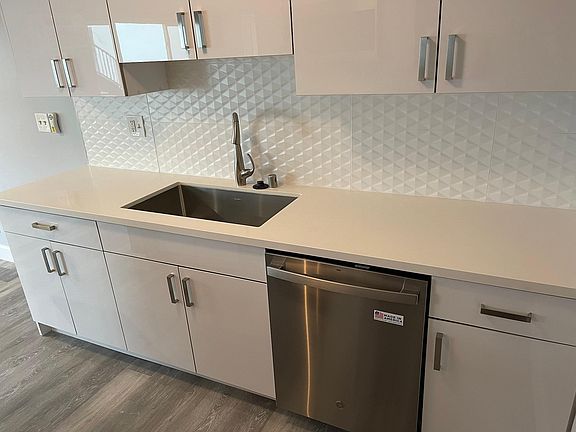 Totally Renovated 2+2 Mid Century Modern unit with IN UNIT Laundry. White quartz counters sit on top of the lacquer finished modern kitchen cabinets in this stunning kitchen. The beautiful textured backsplash provides the perfect finishing touch. The kitchen boasts an enormous stainless sink and stainless steel appliances including Range, Stove, Built in Microwave & Dishwasher. The master suite has a separate back door entrance and access to the private master bathroom. A large closet, built in storage cabinets and a ceiling fan are featured. The master bathroom has white shaker cabinets with quarts counters. New subway shower tile and resurfaced bathtub. There are new windows and new floors throughout the unit recessed dimmable LED's and tons of closet space. The new frosted glass front door is protected by a metal security door. There is a tandem parking space that can handle 2 small cars or one large SUV and street parking is plentiful. Walking distance to shops and restaurants in the highly desirable Valley Village/ North Hollywood neighborhood adjacent to Sherman Oaks, Studio City and Toluca Lake. Non-smoking. 12 month lease. Owner pays water and sewer. Tenant pays gas and electric. One tandem parking space (2 cars depending on size) and additional storage available.