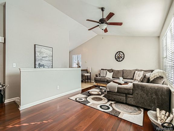 This beautifully updated ranch features an open layout with wood floors and vaulted ceilings in the spacious living room. The kitchen has rich cherry wood cabinets, slab granite countertops, and newer stainless steel appliances. Both bathrooms have been thoughtfully remodeled with stylish finishes. The versatile basement offers plenty of options, whether as a cozy suite or a fantastic TV/game room. Outside, you'll find a beautifully landscaped yard, a brand new deck, and a vibrant Autumn Blaze Maple tree that adds stunning seasonal color. The west-facing orientation provides excellent snow melt in the winter and shade in the summer. With no HOA and a prime location near Anythink Library, highways, and DIA, this home combines comfort and unbeatable convenience. All information provided is deemed reliable but the buyer and/or buyer's agent should verify all information to their satisfaction.