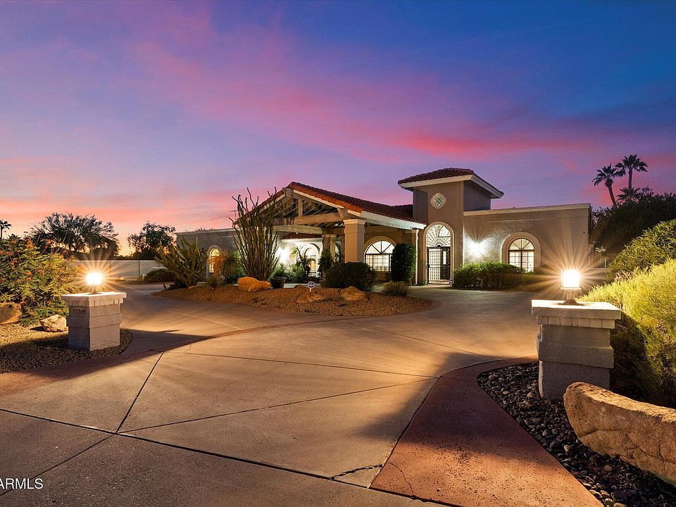 Set on a corner lot of more than an acre with NO HOA in Buenavante, this 6,700 sq ft estate includes a 5,500 sq ft main residence and a 1,200 sq ft guest house. An expansive circular driveway leads to the main home, recently updated with a new roof (2024), vaulted ceilings, and an open layout with a dedicated bar and kegerator. The fully remodeled kitchen showcases quartz countertops, double ovens, electric cooktop, walk-in pantry, and center island, flowing seamlessly into a great room with gas fireplace. The primary suite offers a wood-burning fireplace, steam shower, dual closets, safe room, and adjoining flex space ideal for a gym, office, or nursery. Additional bedrooms include a junior suite and two connected by a Jack-and-Jill bath. Outdoors, a heated pool with slide, grotto -- and waterfall is complemented by dual built-in BBQs, fire pit, and spa. Dual tankless water heaters, LG washer and dryer, and a three-car epoxy garage with cabinetry add convenience. The detached guest house adds three bedrooms, full kitchen, bar area, bonus storage, and a two-car air-conditioned garage with cabinetry, plus RV hookup with electric and cleanout. A buried 1,500-gallon propane tank and Brinks home-automation system with front-door camera complete this Scottsdale retreat that you won't want to miss!