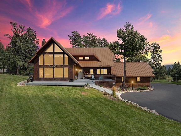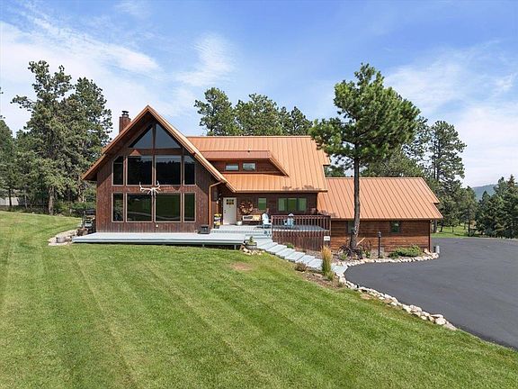 Welcome to 12210 Oriole Ct—a stunning 5-bedroom, 3.5-bathroom 4+ car oversized garage, home nestled on nearly an acre in the beautiful Boulder Canyon area. The views and the natural light make this home a perfect sanctuary. With over 4,400 square feet of finished living space, this property offers the perfect blend of privacy, comfort, and versatility. Step inside to discover a warm and inviting interior featuring a large gourmet kitchen, multiple living areas, including a formal living room with a custom rock fireplace, a cozy den, and a spacious family room ideal for entertaining. The eat-in kitchen and formal dining room provide ample space for hosting, while the wet bar/game room adds a fun twist for gatherings. Upstairs the primary suite boasts a soaker tub and vaulted ceilings, while additional bedrooms offer generous dimensions and natural light. The walkout basement is fully finished, expanding your options for guest quarters, hobbies, or a home office. Outside, enjoy the serenity of mature trees, manicured landscaping, and a wraparound deck perfect for morning coffee or evening sunsets. Located on a quiet cul-de-sac with paved roads, this home offers both tranquility and convenience—just minutes from downtown Sturgis and the scenic Black Hills. A few features you will love include, full walkout basement, wraparound deck & beautiful landscaping. Whether you're looking for a forever home or a spacious getaway, this home delivers timeless charm and room to grow.