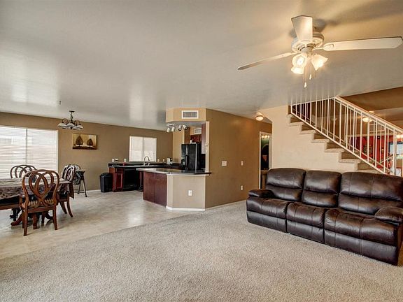 You must see this very nice 4BR/3BA home located on a large lot within Cambridge Estates. This very popular floor plan includes a BR/Den downstairs, a great room concept, upstairs laundry and a huge upstairs loft with vaulted ceilings. Eat in kitchen features a wrap around breakfast bar, plenty of cabinet/counter space and a large walk in pantry. Kitchen opens to the family room complete with fireplace, entertainment niches and plenty of natural light. Master suite includes a walk in closet, dual sink vanity and ceiling fan. Window blinds and ceiling fans throughout. Over-sized backyard has covered patio with built in BBQ. To show is to sell.