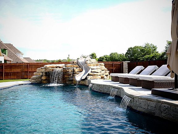 5 bedrooms / 4 full bathrooms / 3 car garage POOL 3893 square feet built December 2017 Heated saltwater pool with rock waterfall with builtin slide and swim through grotto built by Baker pools Great home built by Dodson Homes. Located at 121 and Sheridan in Bixby north school district. Master on first level with his and her closets, one closet connects to the laundry room, master bath has a walk in shower with dual shower heads. Second bedroom down with connected bath. Hardwood floors in office, entry, living, hall and kitchen. Open floor plan with spacious living room, very large eat in dining connected to the kitchen currently holds an 8 foot table. Wall of windows from the living and dining showcase the beautiful pool. Kitchen is equipped with S/S appliances built in fridge freezer combo, dual ovens, large granite island and walk in pantry. Upstairs has 3 more bedrooms 2 share a jack and jill bath the other bedroom has a connected bath, all bedrooms have huge walk in closets. The game room is located above the garage making it quiet for the kids to play. The house backs up to an access road meaning no neighbors behind the house. The pool was built by Baker pools it is 18x36 6 feet deep in the deep end, 6x10 tanning ledge. Home has a Generac whole house generator for a secure peace of mind in case of power outages.