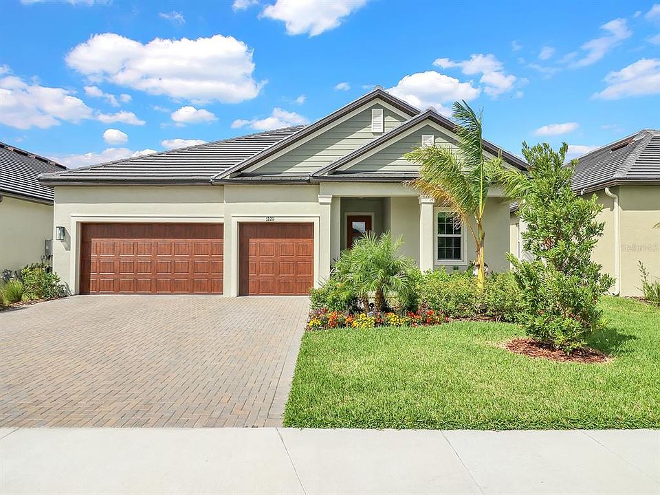 WHY WAIT FOR NEW CONSTRUCTION WHEN THIS HOME HAS IT ALL!! THIS HOME IS ONLY ONE-YEAR OLD!! MOVE-IN READY CHARMING 3-Bedroom/3-Bathroom/+ Flex Room/3-Car Garage WATERFRONT Home in the Highly Desirable Medley at Prosperity Lakes, an Active Adult RESORT-STYLE Community. Welcome to your dream home! This stunning residence is the popular EVENTIDE model! As you enter through the custom glass front door, you’ll be greeted by an inviting open floor plan adorned with crown molding, tile floors throughout the living areas and 8 ft doors throughout the home. The spacious great room boasts beautiful lake views, creating a serene backdrop for relaxation and entertaining. Culinary enthusiasts will love the gourmet kitchen, featuring quartz countertops, a stylish marble backsplash, and lots of cabinets and counter space, making meal prep a delight. The adjacent dining area is perfect for family gatherings or casual meals. Retreat to the luxurious master suite, complete with a huge walk-in closet and an en-suite bath featuring a relaxing bathtub and spa-like walk in shower. Two additional bedrooms offer generous space and comfort, while the flex room can serve as a home office or guest space. The front bedroom has an en-suite bathroom and walk-in closet making this a perfect space for guest. Enjoy outdoor living on the screened lanai or the extended paver patio, perfect for barbecues and soaking in the beautiful custom landscaping. This stunning backyard offers breathtaking sunset views that paint the sky with vibrant hues of orange and pink along with impressive, peaceful lake views. The fenced yard provides an ideal area for pets or gardening. With a three-car garage and a large dedicated storage room accessible from the garage, you’ll have plenty of space for your belongings. Ceiling fans throughout enhance comfort and efficiency and crown molding adds elegance. Excitingly, a new clubhouse is opening soon, featuring resort-style amenities including a pool, gym, café, and an activities director to keep your social calendar full. Your HOA includes cable and takes care of your lawn for a maintenance free lifestyle!! This vibrant Active Adult Community is just a short distance from nearby parks, shopping, recreational amenities and beaches making it an ideal spot for an active lifestyle. Don’t miss this opportunity to own a piece of paradise in Prosperity Lakes!