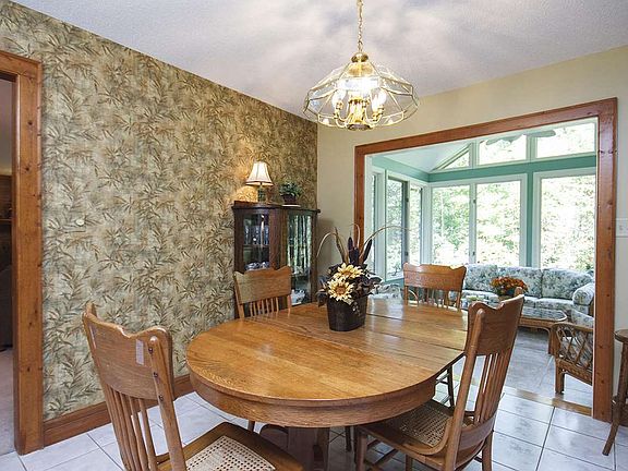 So much to offer in this beautiful one owner home showing pride of ownership throughout! Eat in kitchen features an abundance of cabinetry, ceramic tile and high end stainless steel appliances that includes an induction range. Kitchen leads to a 4 season room surrounded by 3 walls of windows overlooking the gorgeous, 1.06 partial wooded, rolling lot. Very private! Spacious formal dining room and foyer features newer hardwood floors. Living room has newer carpet and 6 panel pocket doors that can be closed or opened to the family room. Upstairs you will find 4 spacious bedrooms. Lower level walkout features a huge rec room with theatre that remains with home, bar with built in cabinets, sink and refrigerator, office and full bath. Roof 8 years, 90% furnace, crown molding, 3 car garage, master bath with tiled shower, large laundry room with utility sink, 2 fireplaces, loads of storage and much more! Tasteful, updated décor throughout. Call for the many fine details of this Aboite Township home. Master bedroom window treatments do not remain.