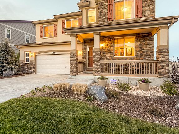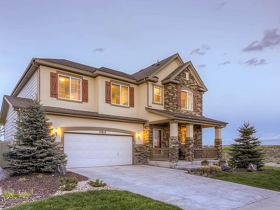 Beautifully Upgraded Former Model Home in Highly Desirable Horseshoe Ridge! A lovely formal study with French doors and built-in bookshelves greets you off the dramatic foyer and is a perfect, private retreat. The family room is quite sizable with plenty of space for real furniture and a feature stone fireplace with mantle. The gourmet eat-in kitchen is truly fit for a chef, with upgraded cabinets, slab granite counters, custom backsplash, and full stainless steel appliance package. Upstairs the master suite is very luxurious with coffered ceiling, lots of light, and luxury en-suite bath with corner soaking tub, solid surface dual vanity, and large walk-in closet. You'll also find three additional spacious bedrooms, full bath with dual vanity, and a fabulous loft with tons of space perfect for a second living area, playroom, theater... No detail has been untouched in this home, enjoy views of Parker from your deck and walk-out basement. See this home before it's gone!