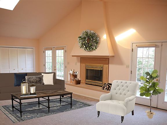 • LIVING ROOM: Built-Ins, French Door, Beamed Ceiling