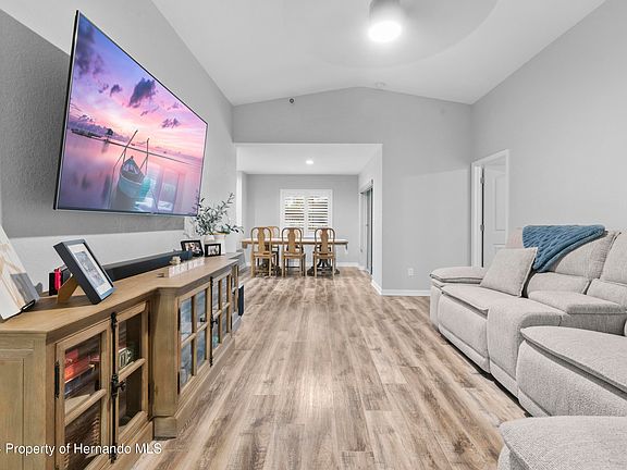 Welcome Home! This well maintained 3-bedroom, 2-bath, 2-car garage pool home is located in the heart of the highly sought-after Royal Highlands neighborhood. No flood zone (high and dry), No HOA and No deed restrictions. Home features an open floor plan with luxury vinyl flooring throughout - No Carpet here! Custom built-ins in every closet, plantation shutters on all windows, and high ceilings give this home the perfect touch. Wired video surveillance and lawn irrigation too. Enjoy the backyard year-round with a screened-in heated saltwater pool and lanai, great for entertaining guests. Take advantage of the metal building and storage shed out back, providing you with ample space for all your toys and equipment! Conveniently located near US 19 and the Suncoast Parkway for easy commute. 10 minutes from major shopping/dinning choices and the famous crystal-clear waters of the Weeki Wachee Springs. 20 Minutes to the local Pine Island beach for those beautiful sunsets. Don't miss out - call today to schedule a private showing!