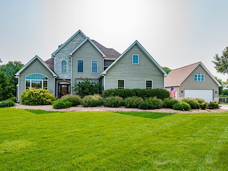 Beautifully maintained home in desirable Schaefer Woods, on a lovely acre which backs to Subat Forest Preserve. Upgraded throughout from top to bottom! First floor primary suite with tray ceiling, walk-in closet and bay window overlooking the huge back yard and forest preserve. Primary bath features double sinks, Corian counters, custom cherry cabintry and separate shower. Two story family room overlooks the backyard with gas fireplace featuring an antique mantel and kitchen with custom cherry cabinetry and quartz counters. Pantry and laundry room have plenty of shelving too, along with an exterior door. Upstairs bedrooms have walk-in closets. Six panel oak doors, ceiling fans and Pella architectural windows as well. Huge basement (9', radiant tubing and roughed in for bath). New roof - 2019, new garage openers, rollers and springs - 2022, On Demand/zoned water heaters and broilers -2023 and On Demand well pump - 2023. All of this plus a second building (20x30, 12 foot ceiling with loft area) in which the possibilities are endless................ second garage for 2 more cars, workshop, craft area or boat storage. This home truly has great views from every window and space for all! Ready for you to move into and enjoy!